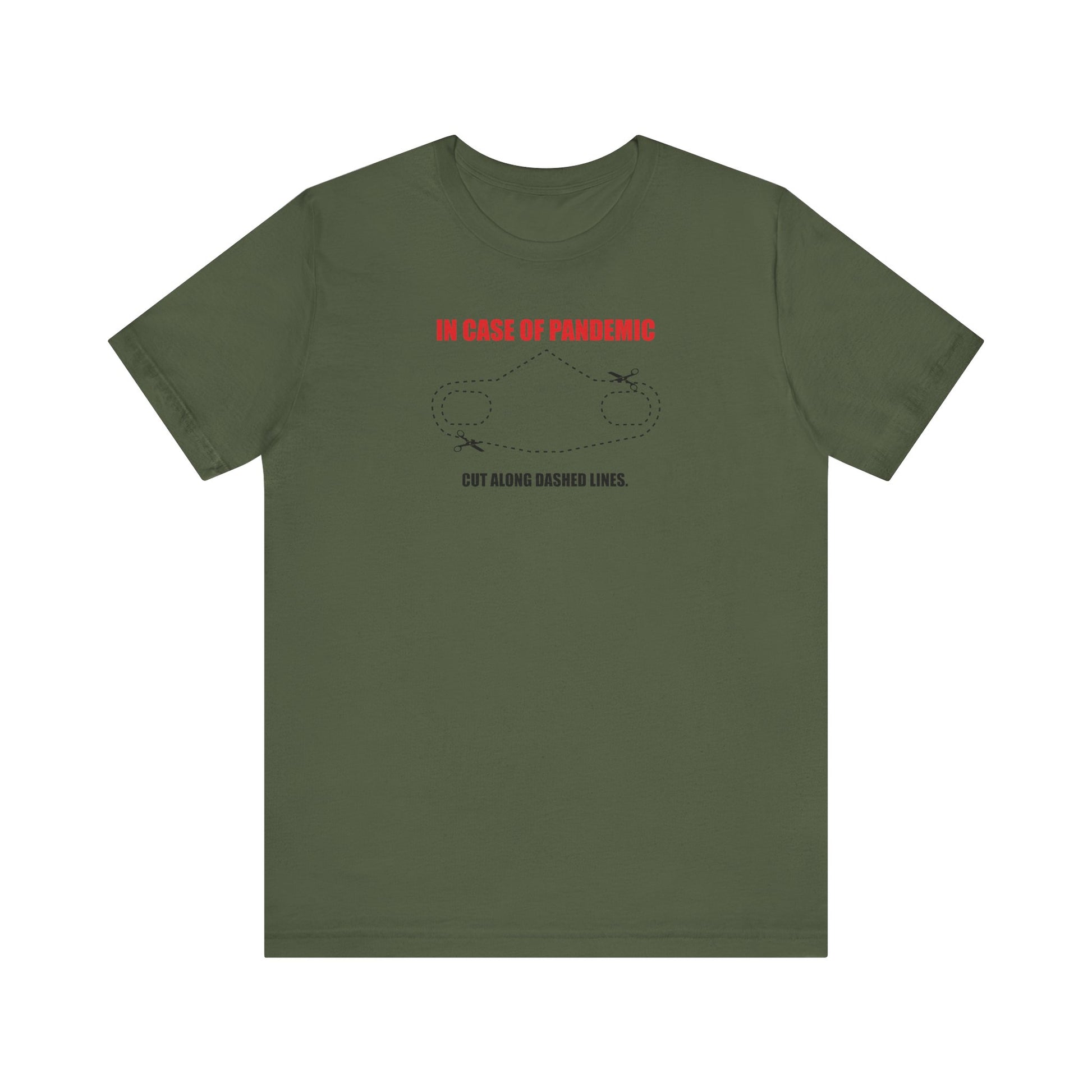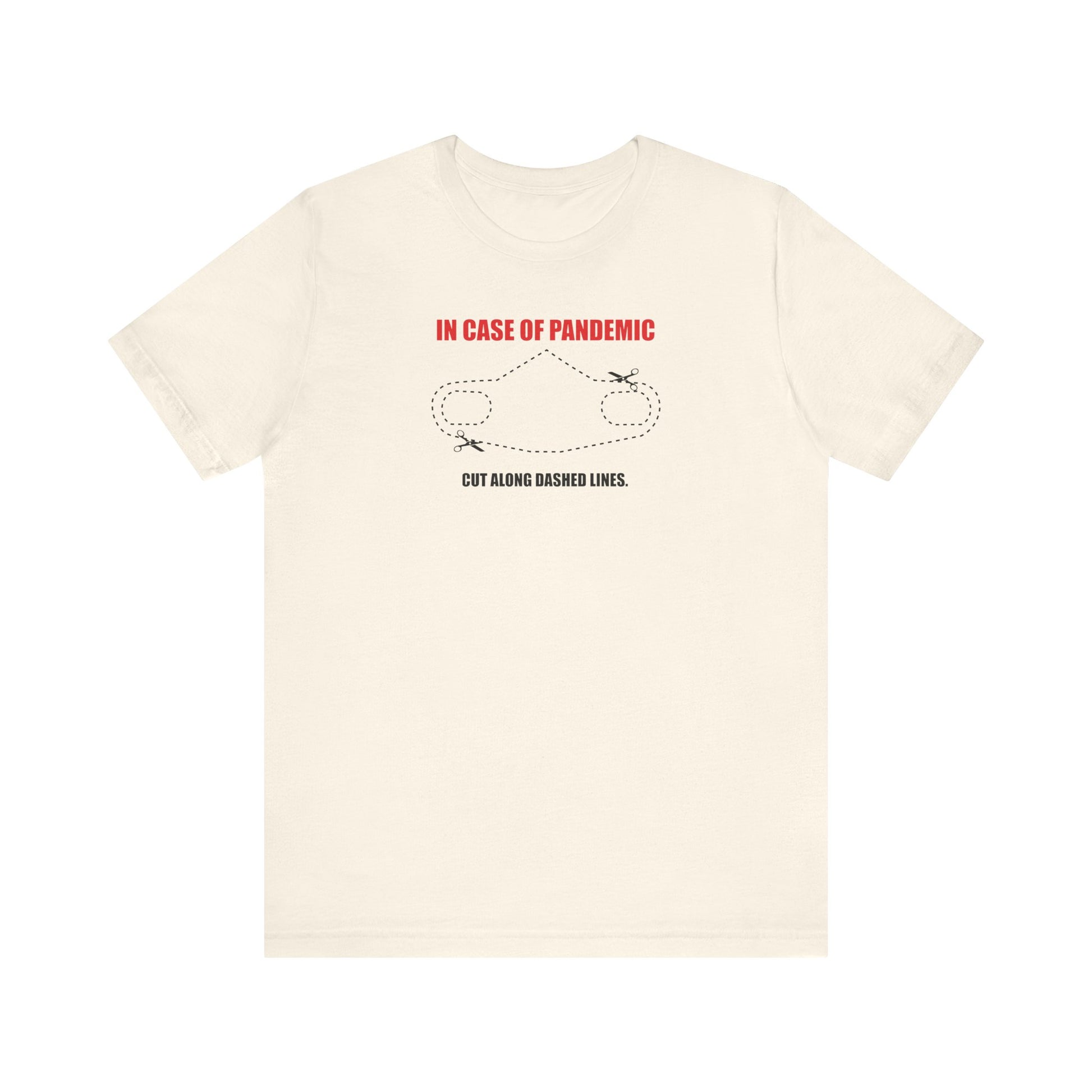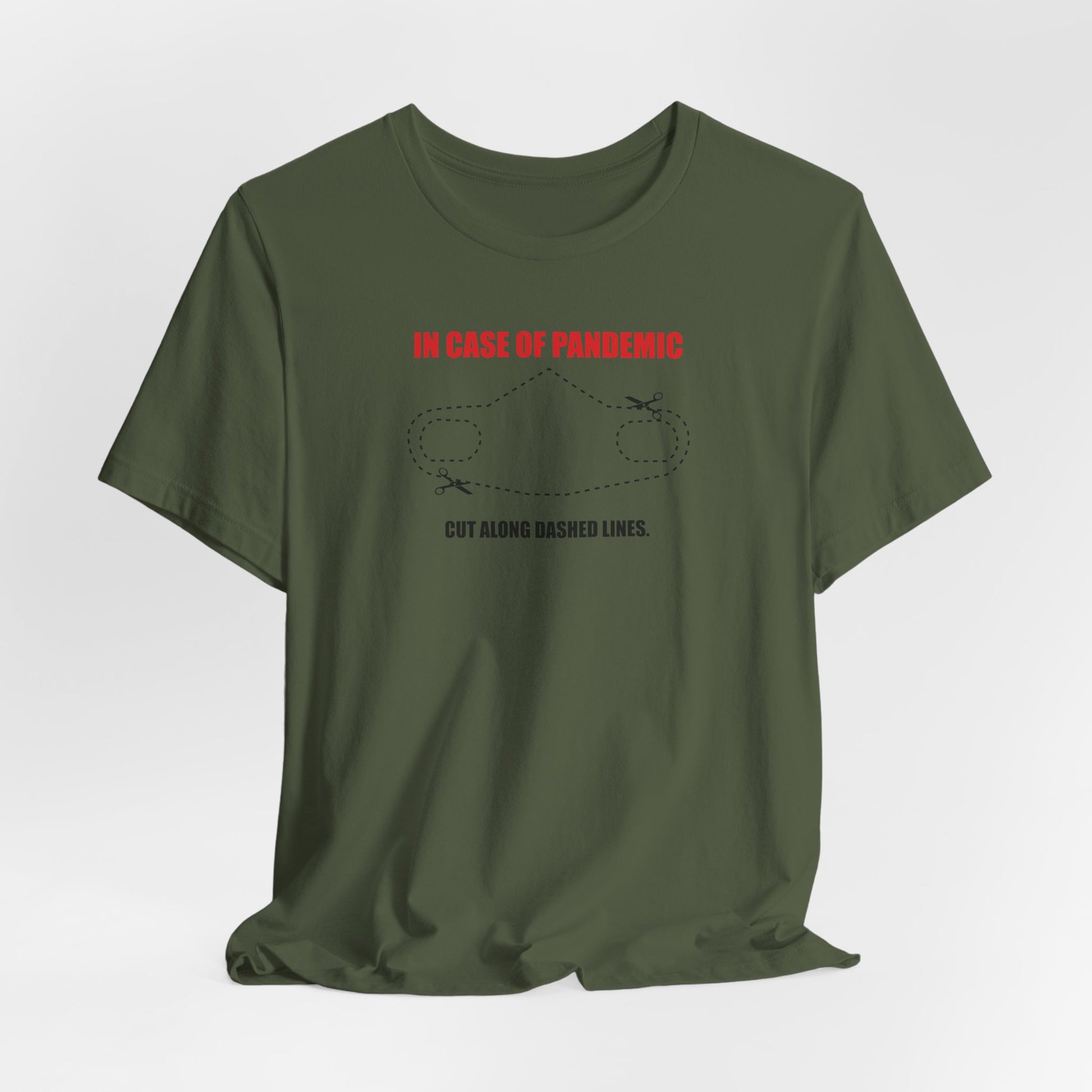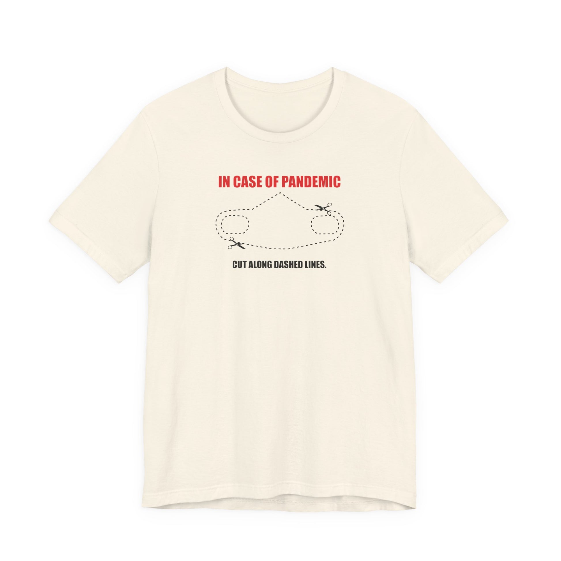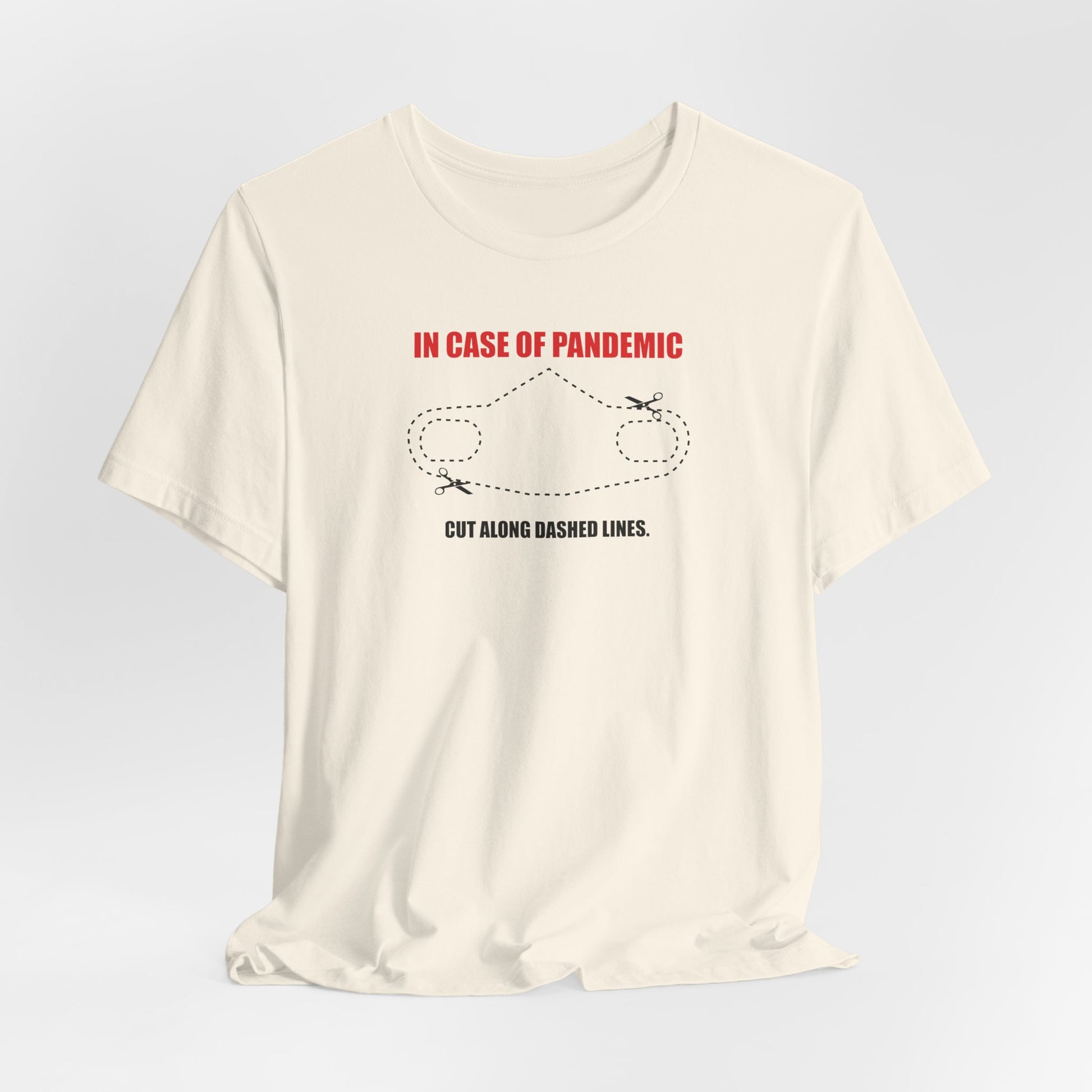 CUT IN CASE OF PANDEMIC. This classic unisex jersey short sleeve tee fits like a well-loved favorite. Soft cotton and quality print make users fall in love with it over and over again. These t-shirts have-ribbed knit collars to bolster shaping. The shoulders are tapered for a better fit over time. Dual side seams hold the garment's shape for longer.