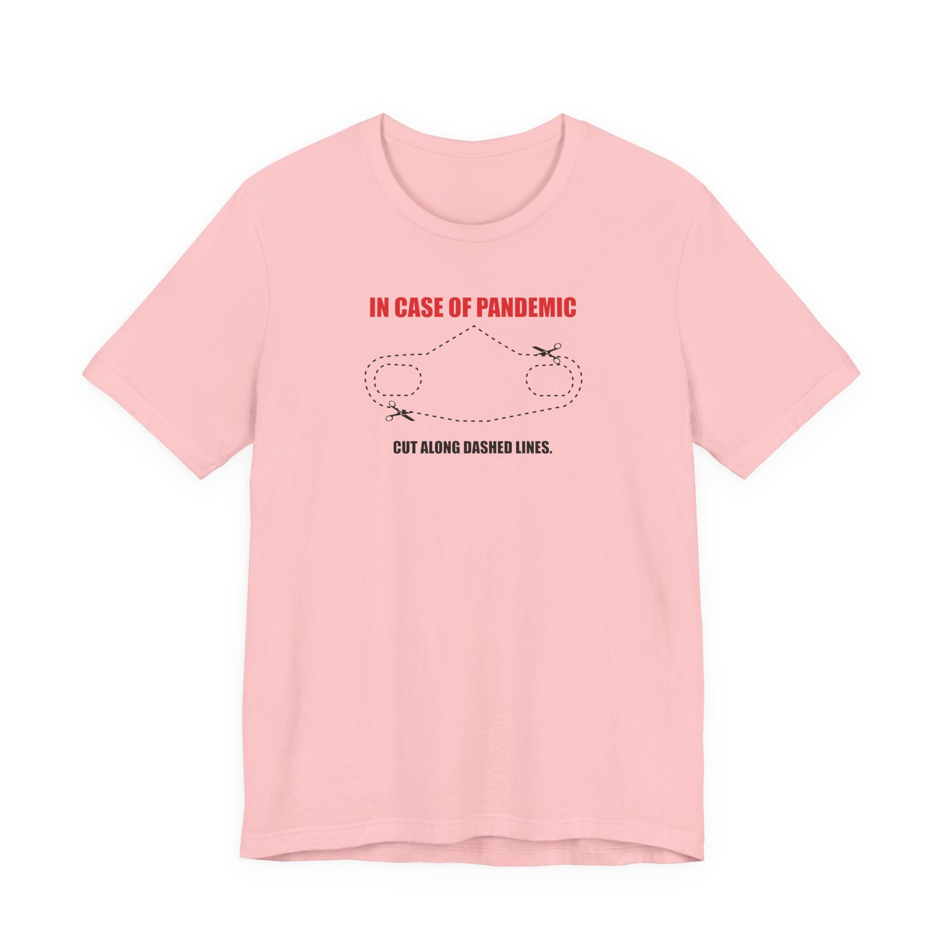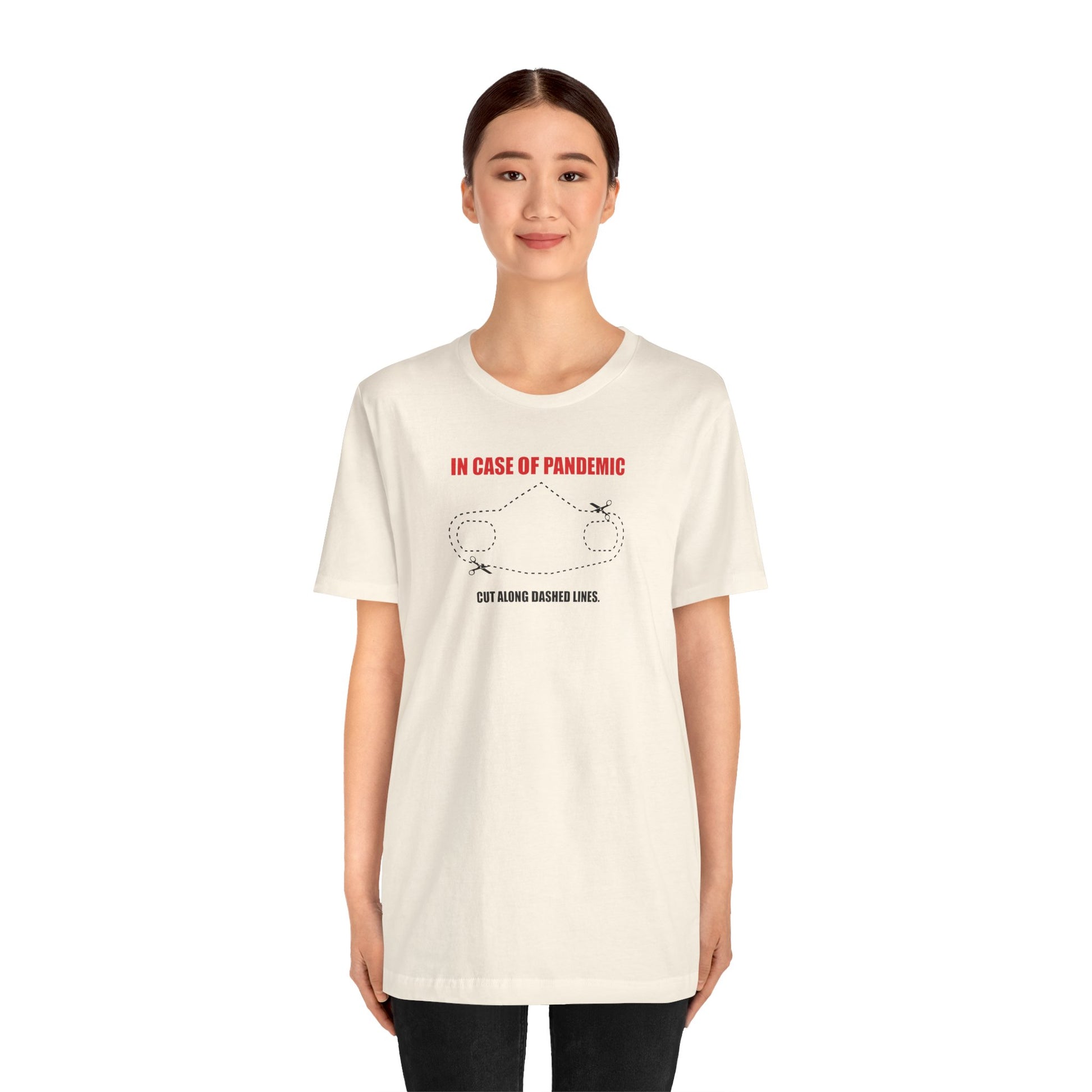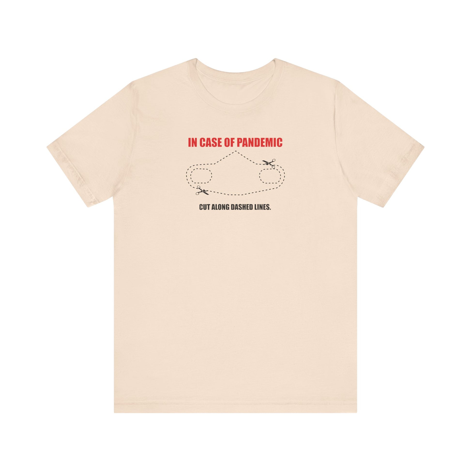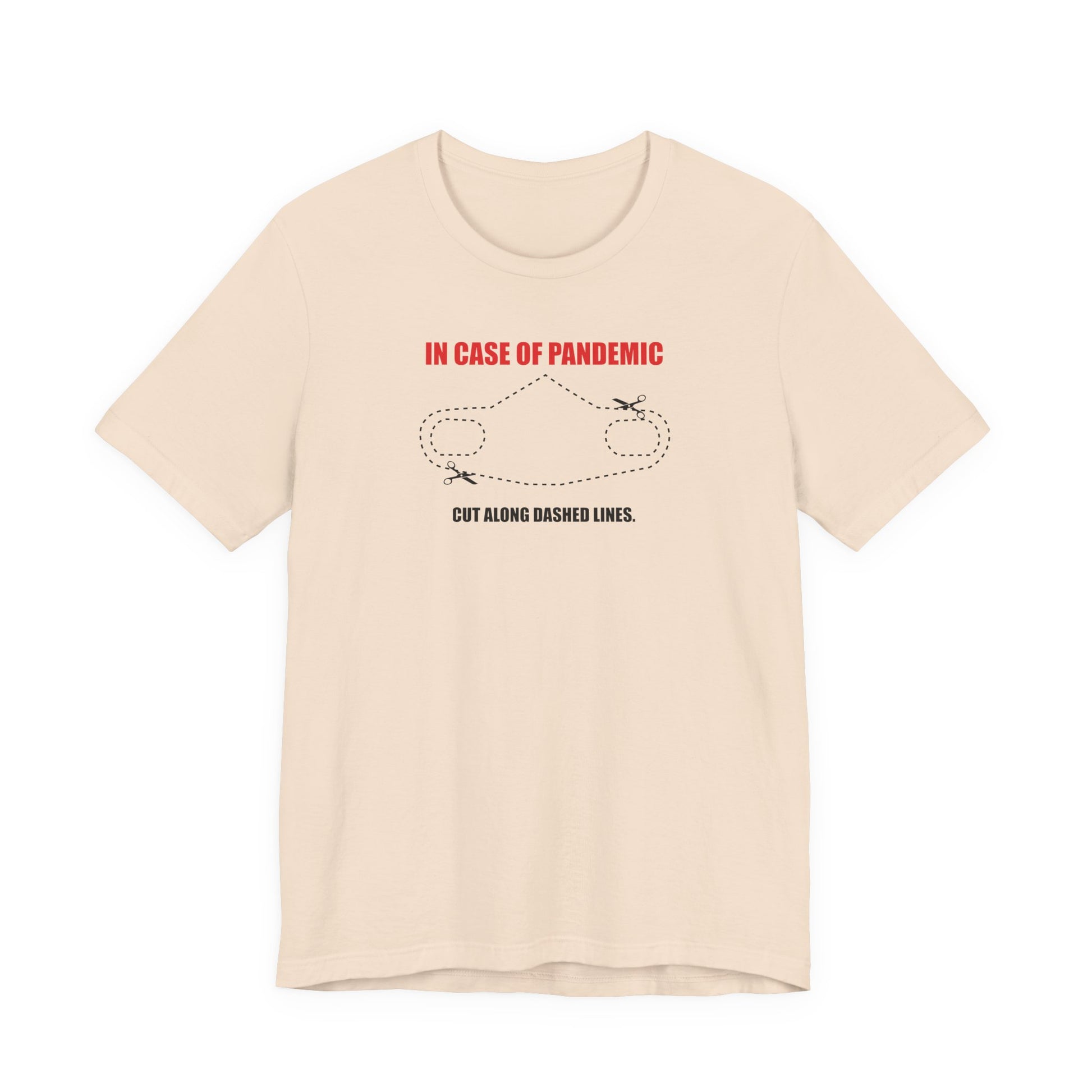 CUT IN CASE OF PANDEMIC. This classic unisex jersey short sleeve tee fits like a well-loved favorite. Soft cotton and quality print make users fall in love with it over and over again. These t-shirts have-ribbed knit collars to bolster shaping. The shoulders are tapered for a better fit over time. Dual side seams hold the garment's shape for longer.