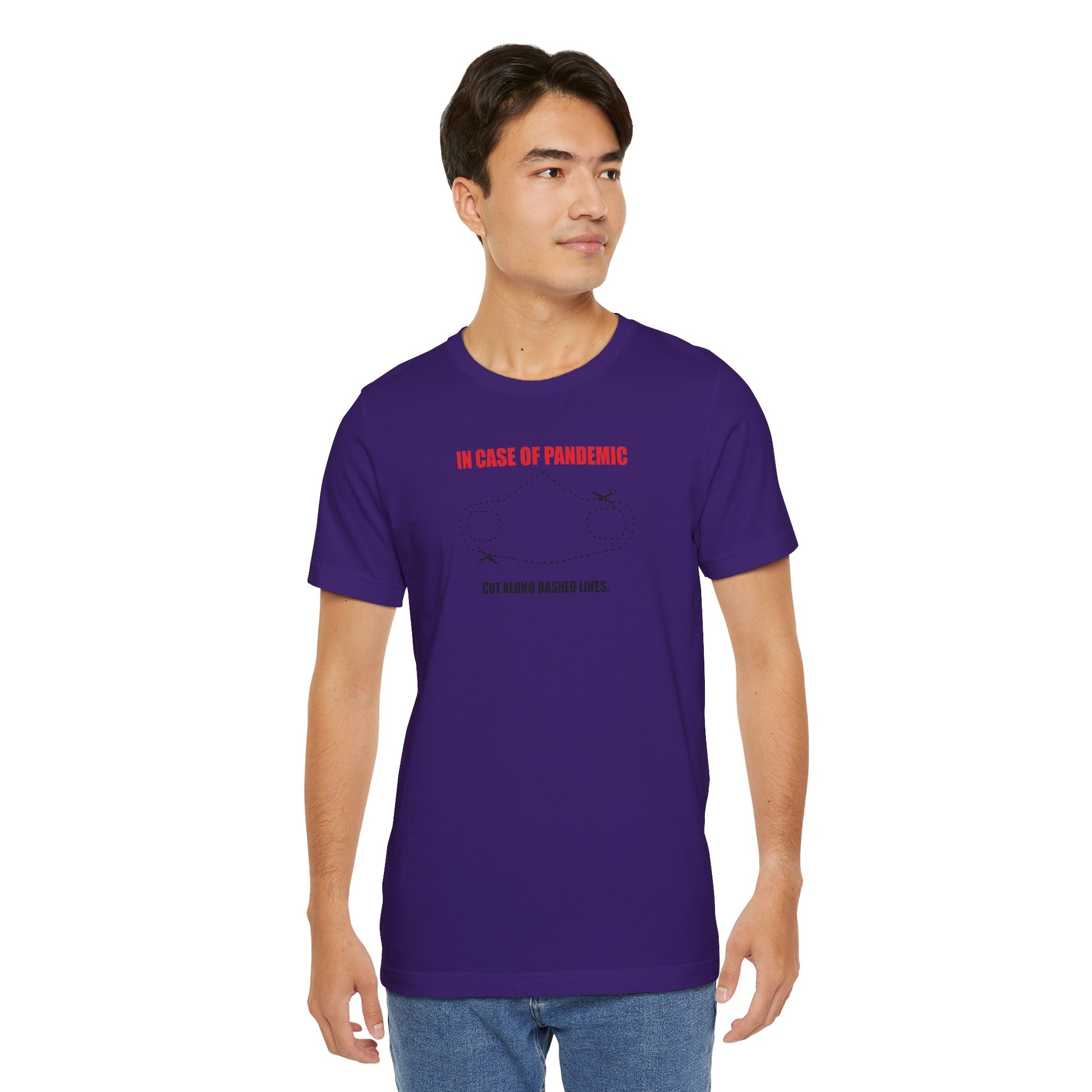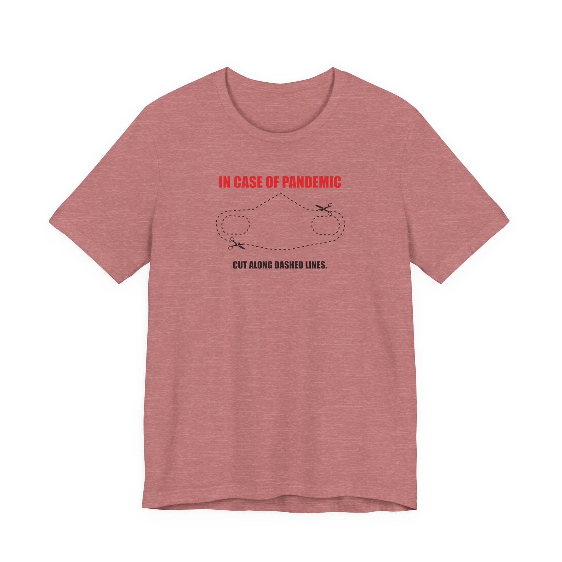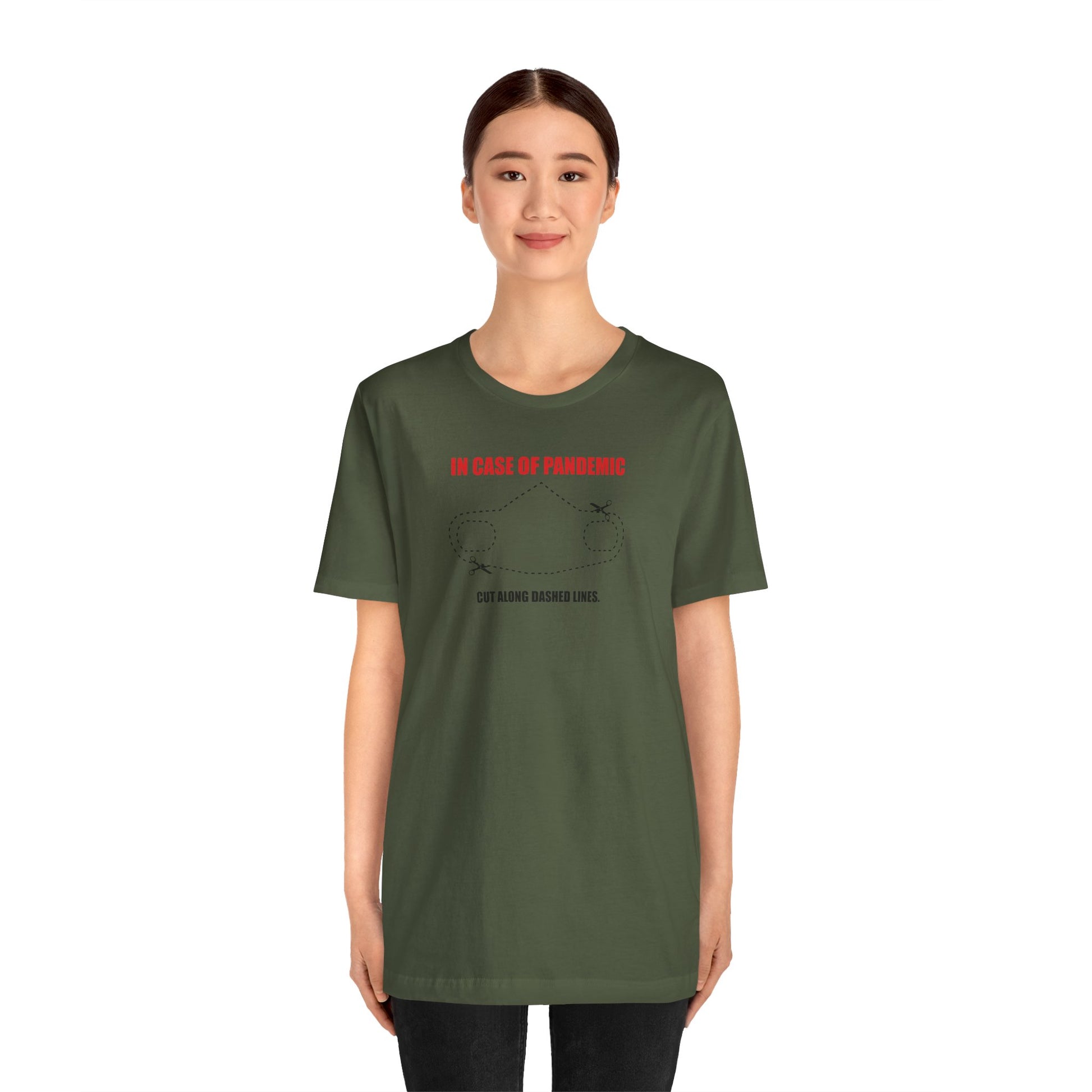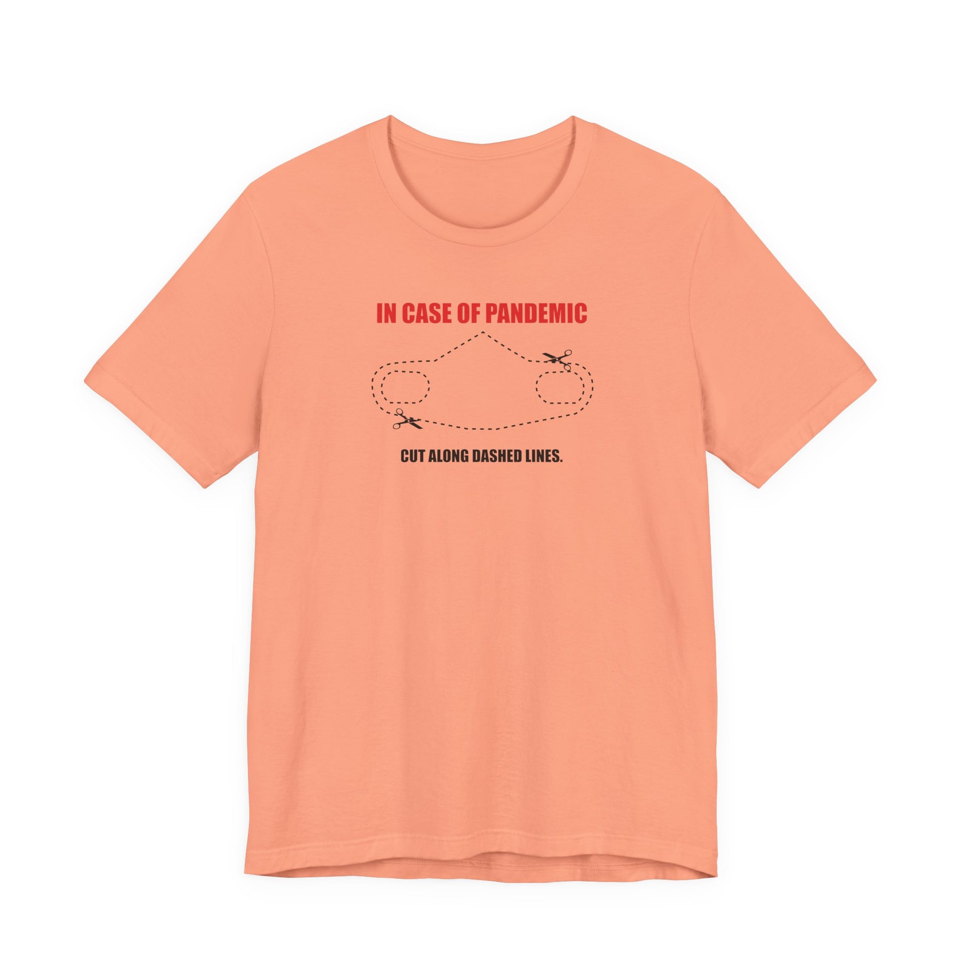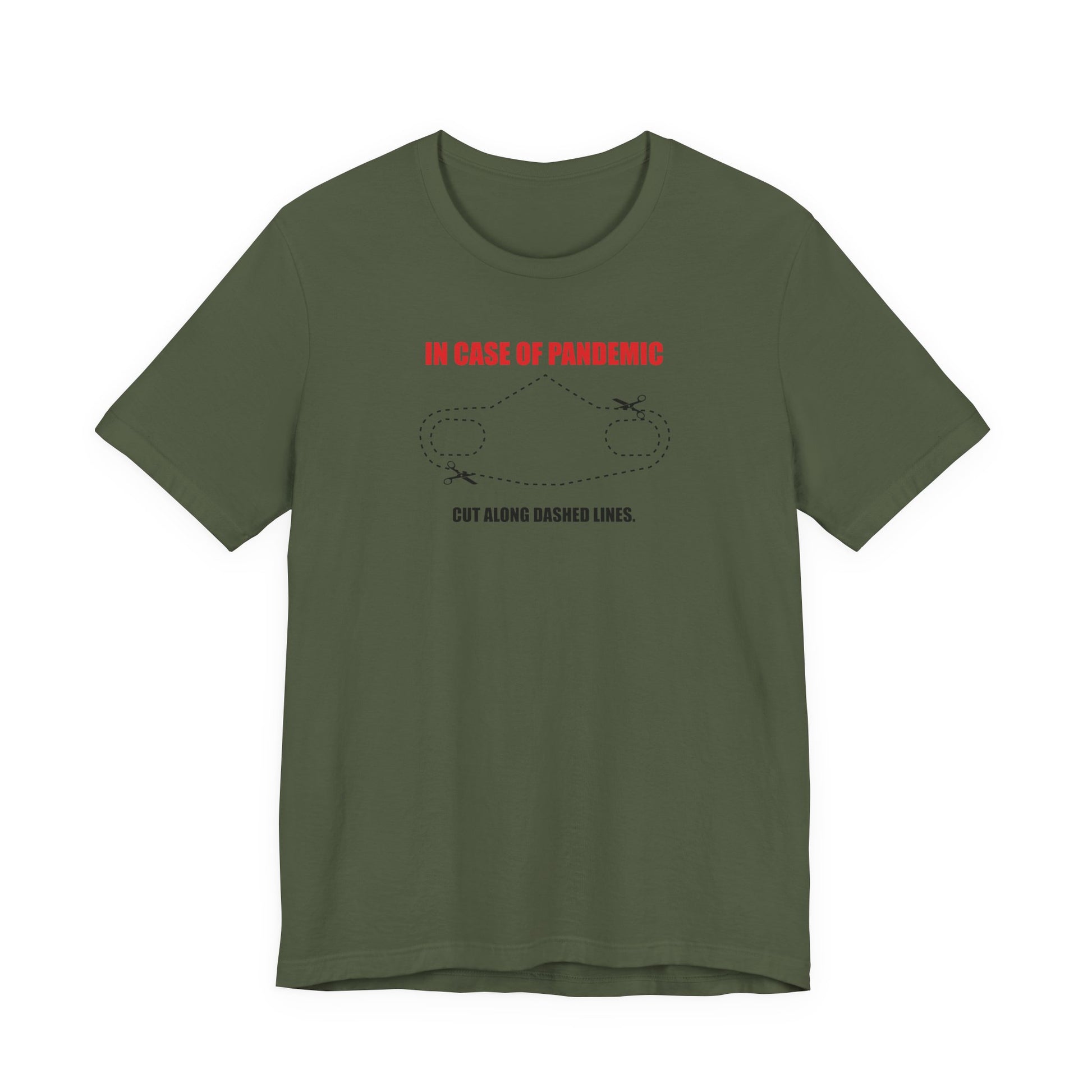 CUT IN CASE OF PANDEMIC. This classic unisex jersey short sleeve tee fits like a well-loved favorite. Soft cotton and quality print make users fall in love with it over and over again. These t-shirts have-ribbed knit collars to bolster shaping. The shoulders are tapered for a better fit over time. Dual side seams hold the garment's shape for longer.