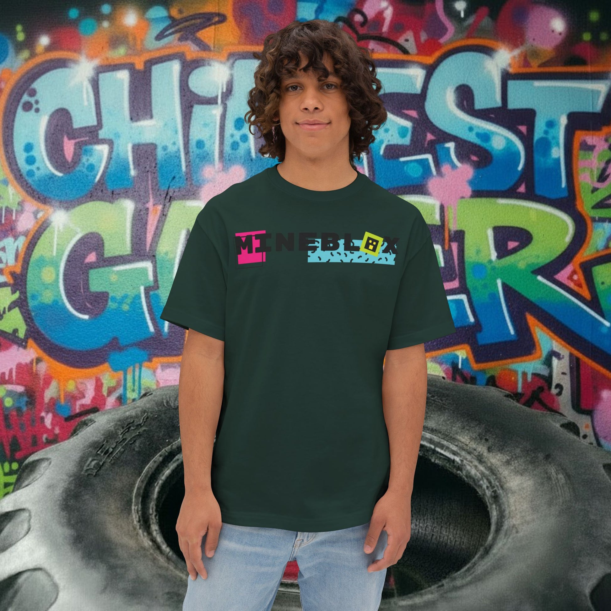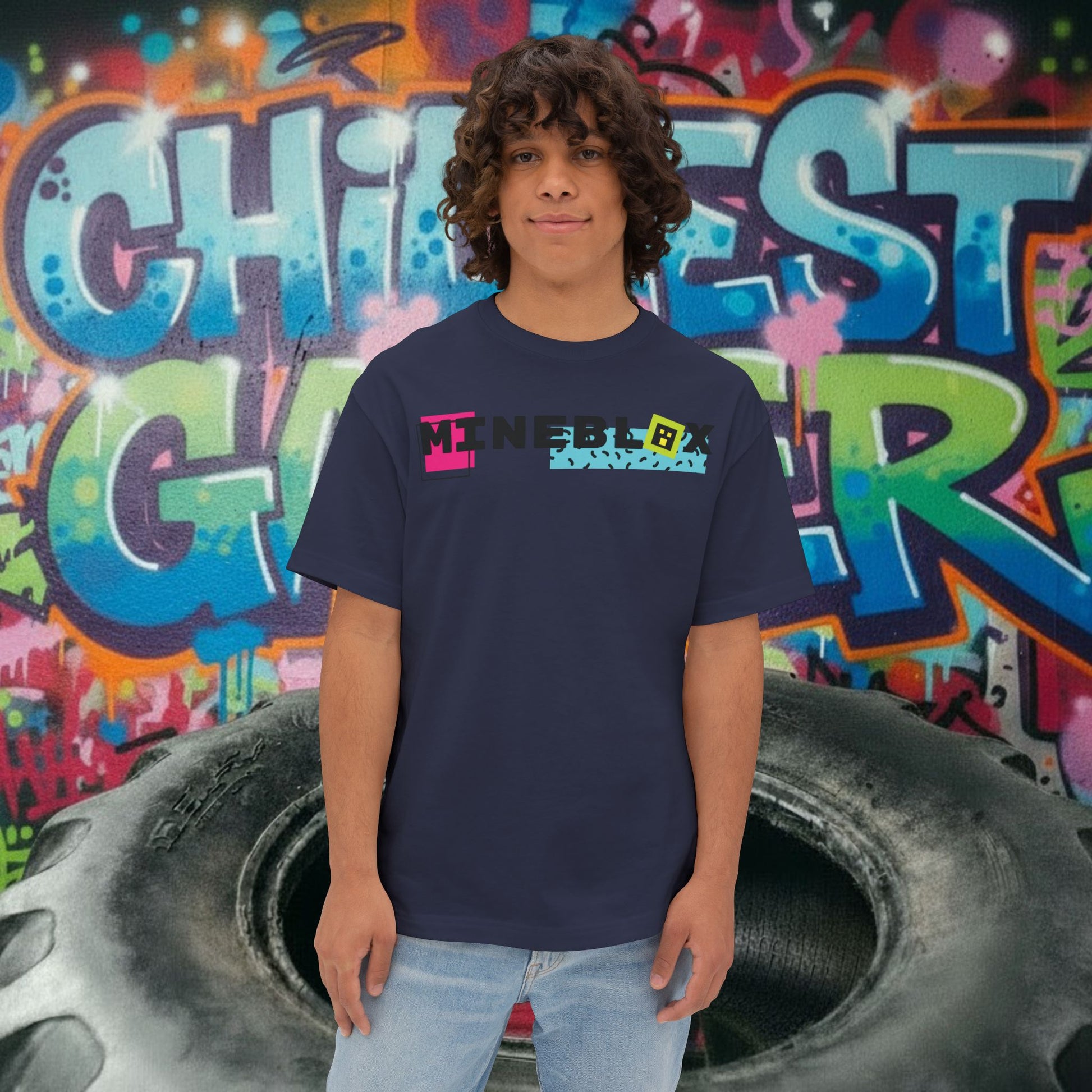 MINEBLOX. Comfort and style is the name of the game for these custom boxy t-shirts. Their relaxed fit along with the dropped shoulders add that modern aesthetic that can blend into any occasion. All shirts are made with 100% airlume, ring-spun and combed cotton for extra softness. (Athletic Heather is 90% / 10% airlume combed and ring-spun cotton / polyester)